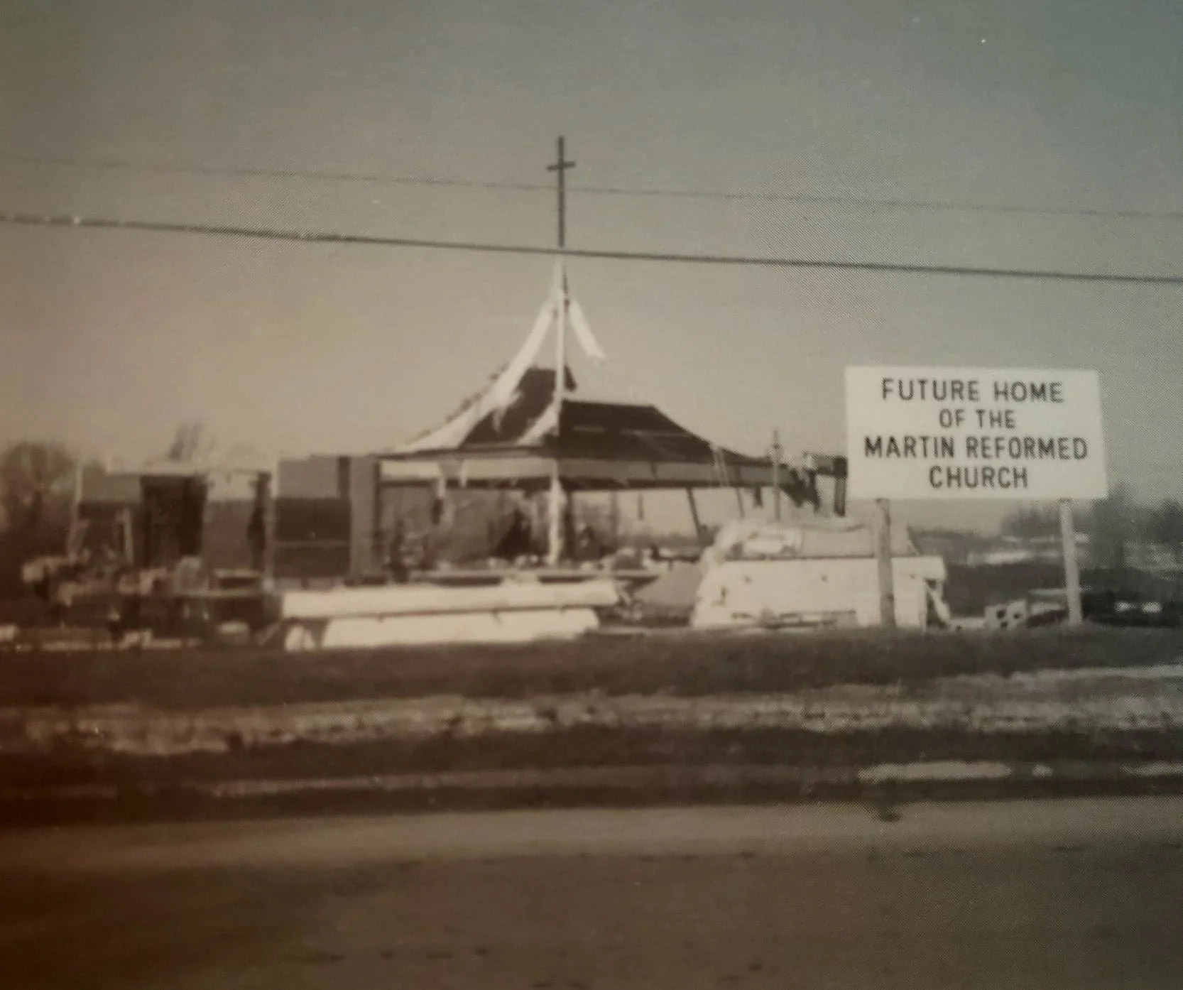 Ground broke on the new site. The design included a sanctuary that would seat 425-450 people. Soon after ground breaking, the arches were set in place pointing heavenward.